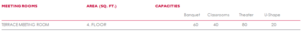 Toplantı salonlarımızın kapasiteleri aşağıdaki gibidir.